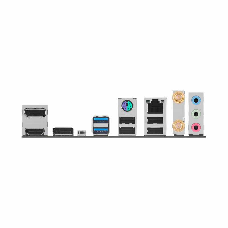 Разъемы на задней панели : | 2 x DisplayPort, 2 x USB 3.2 Gen1 Type-A, 4 x USB 2.0 Type-A, DisplayPort, HDMI, LAN RJ-45, PS/2 (клавиатура/мышь), SMA (для антенны Wi-Fi) |