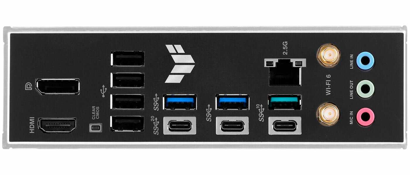 Разъемы на задней панели : | 2 x USB 3.2 Gen1 Type-A, 4 x USB 2.0 Type-A, DisplayPort, HDMI, LAN RJ-45, USB 3.2 Gen1 Type-A, USB 3.2 Gen1 Type-C, USB 3.2 Gen2 Type-A, USB 3.2 Gen2 Type-C, USB 3.2 Gen2x2 Type-C, выход S/PDIF оптический |