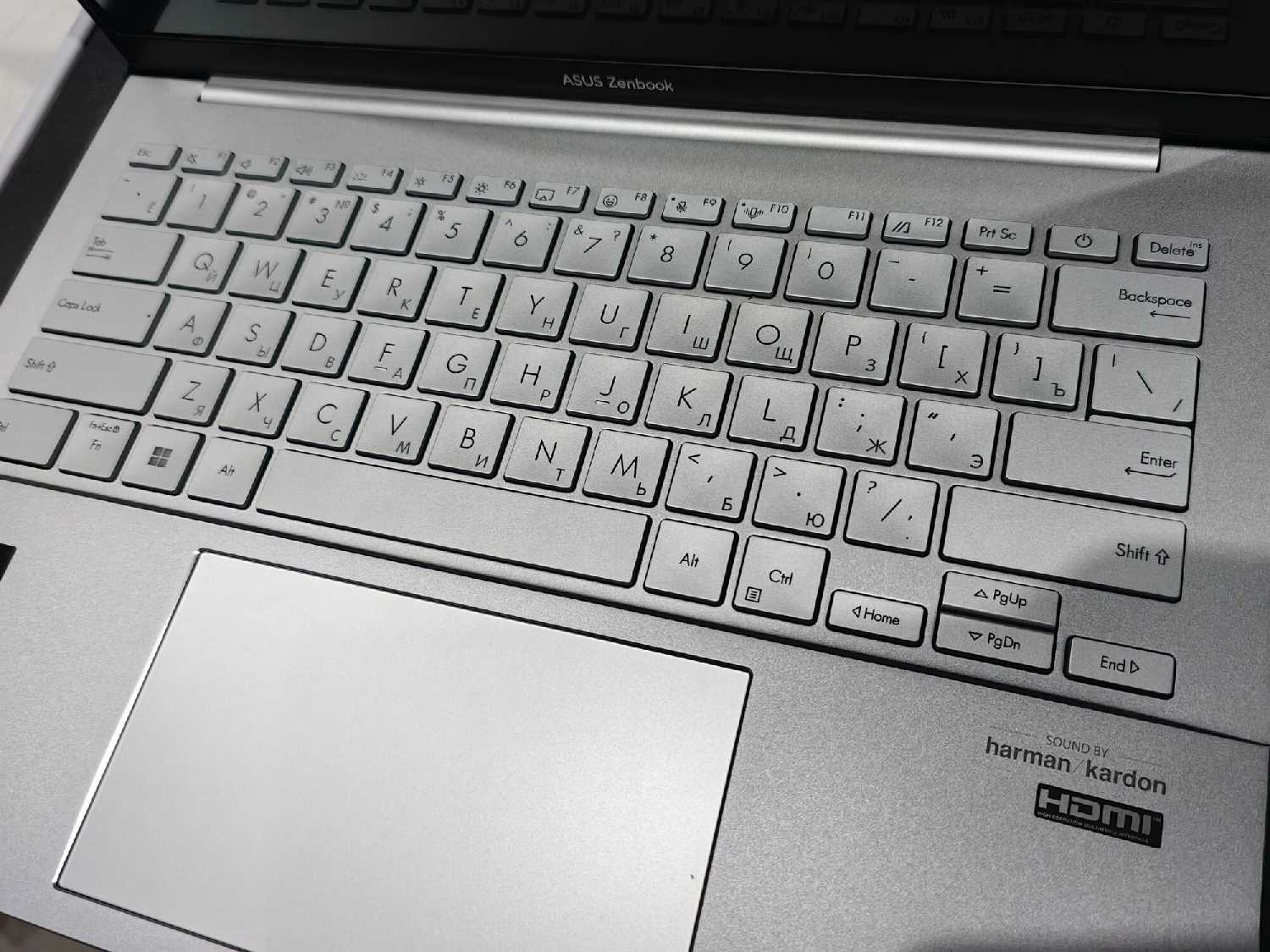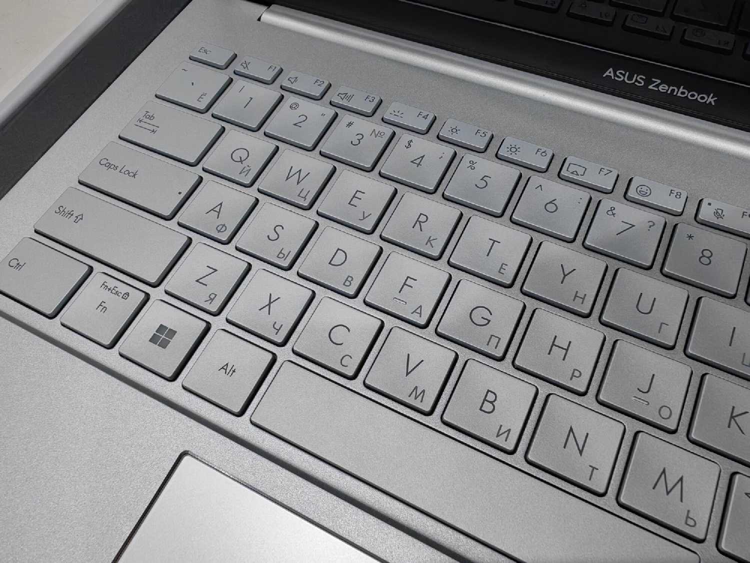 Крупные клавиши обеспечивают мягкий отклик, но их линейное расположение затрудняет слепой набор: функциональные клавиши (отключение звука, микрофона) легко перепутать. Отсутствует правый Ctrl (заменен на Copilot), а Insert совмещен с Delete. Комбинации вроде Ctrl+V неудобны для пользователей с маленькими руками. Русская гравировка нанесена лазером, но может быть блеклой. -