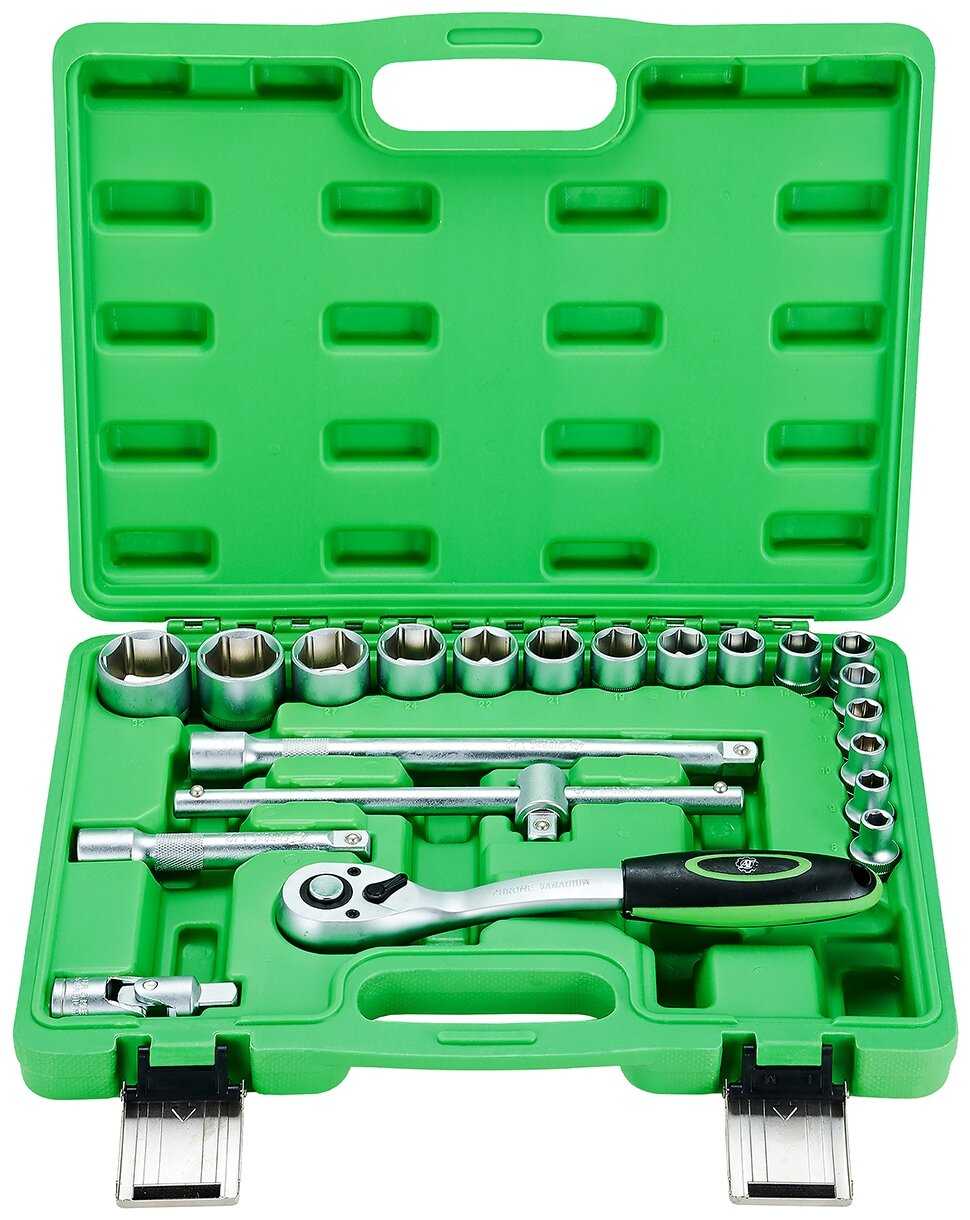 | Гаечные ключи подробно : | - Трещотка 1/4" - 150 мм, 72 зуба, мин. угол поворота 5°, быстрый сброс, флажковый переключатель -Трещотка 1/2" - 250 мм, флажковый переключатель |