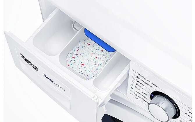 - Маленький и неудобный отсек для порошка затрудняет его полное выполаскивание.