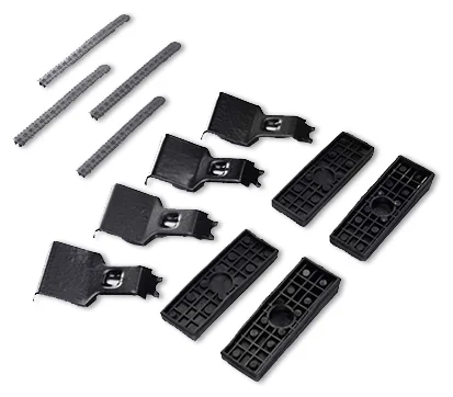 | Подробная комплектация : | - 4 комплекта винтов с шайбами, - 4 резиновые подушки, - 4 линейки, - 4 платформы опоры Е, -инструкция по сборке и установке. |