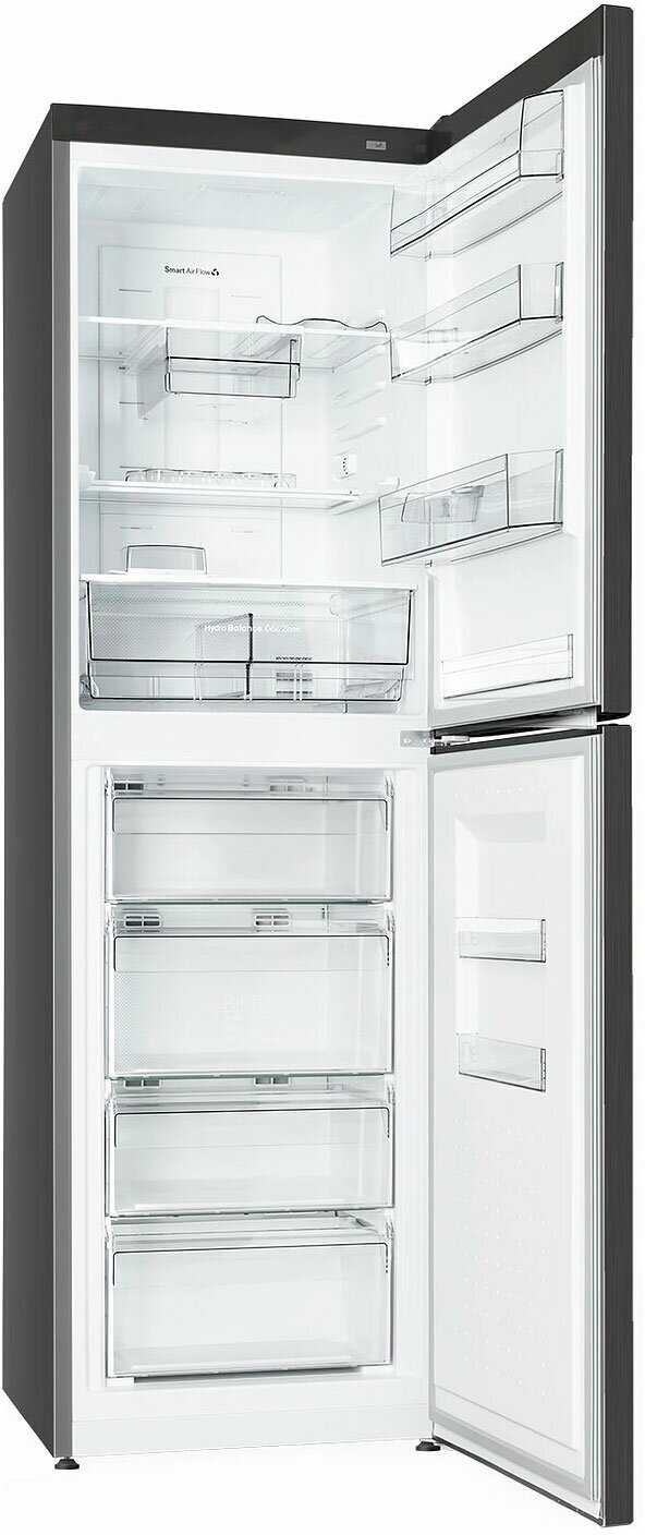 Морозилка вмещает четыре ящика разного размера, включая глубокий бигбокс для крупных продуктов. Дополнительно имеются узкие дверные карманы, идеальные для хранения мороженого или небольших упаковок. Пользователи подчеркивают быструю заморозку и равномерное распределение холода. Это главная причина выбора модели для 80% покупателей. -
