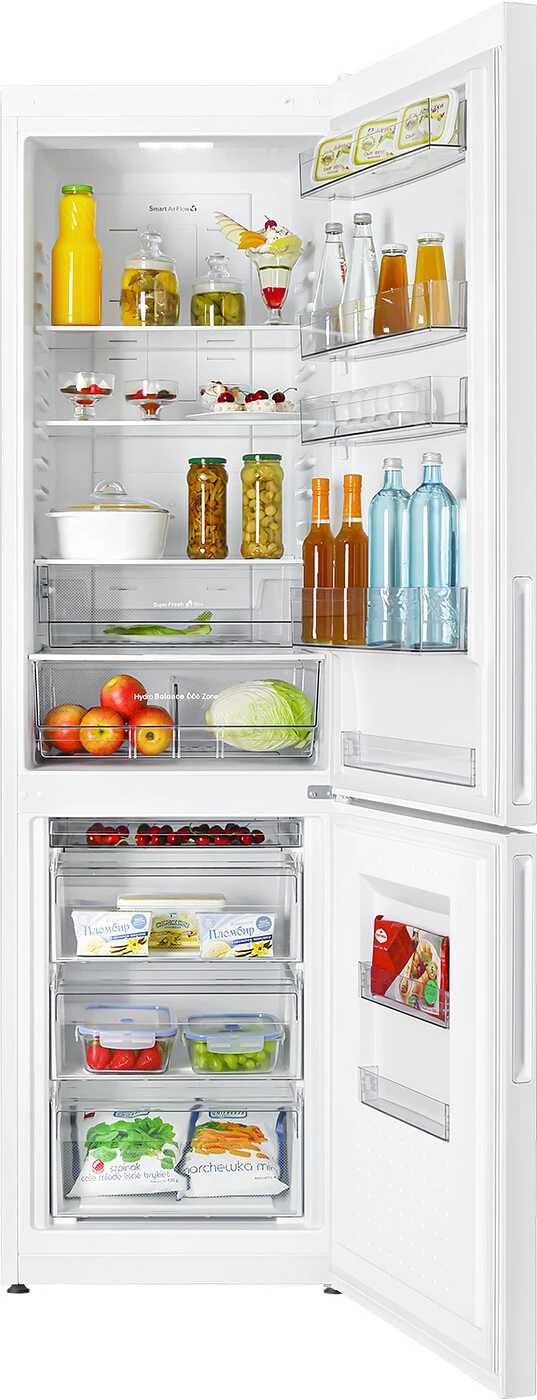 - Большой объем холодильной камеры (подтверждено замерами пользователей) позволяет хранить продукты для семьи из 4-5 человек, включая габаритные предметы вроде трехлитровых банок.
