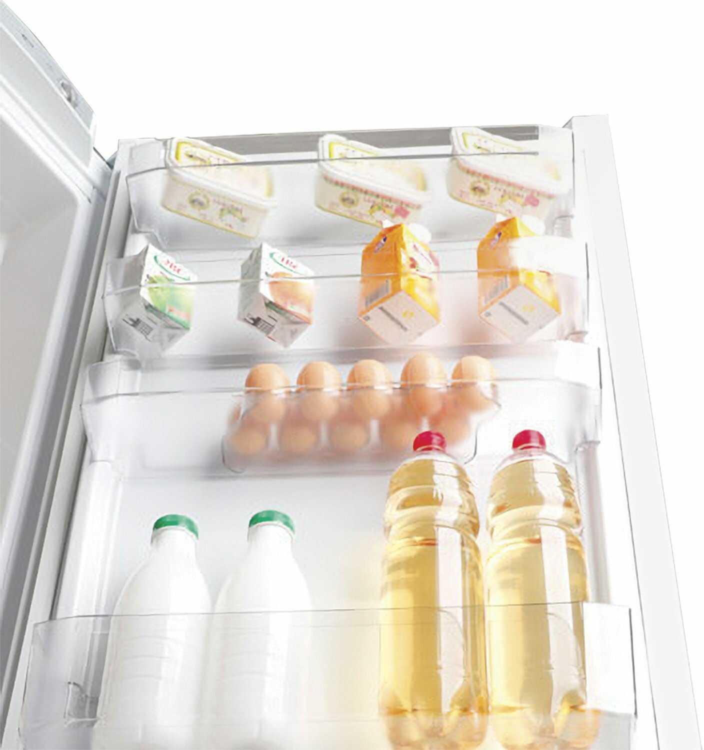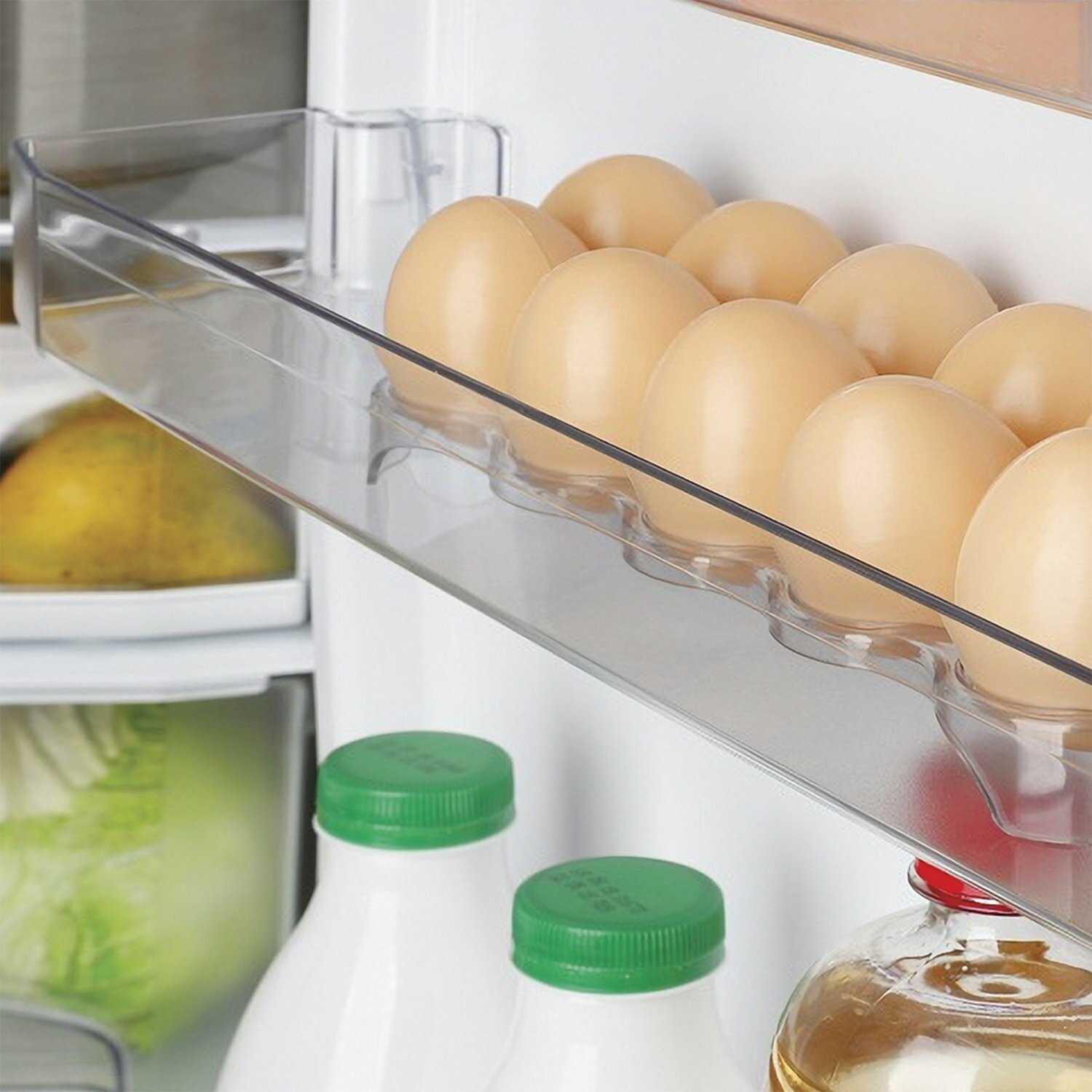 - + Приятный внешний вид, работает довольно тихо (из кухни почти не слышно, но если жить с ним в одной комнате может показаться громким), лоток для яиц на 10 штук (наконец-то продавцы яиц договорились с производителями холодильников), свою прямую функцию выполняет.