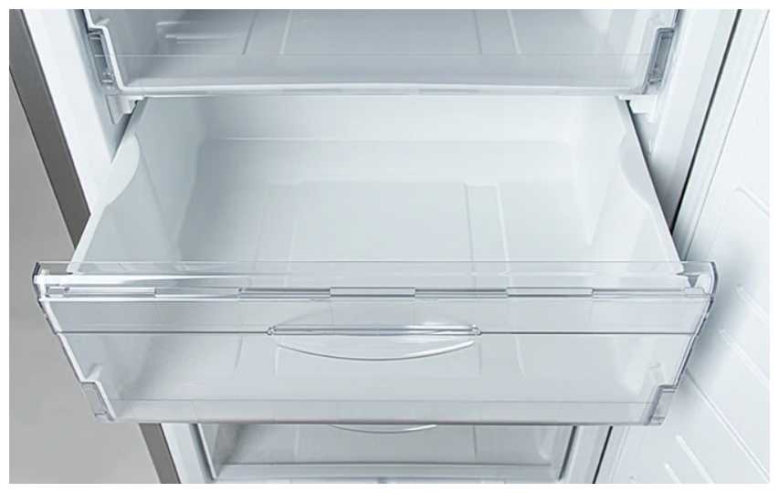 - Глубокие ящики (до 240 л) с продуманной эргономикой позволяют хранить большие объёмы продуктов, включая 20 кг мяса за сутки.