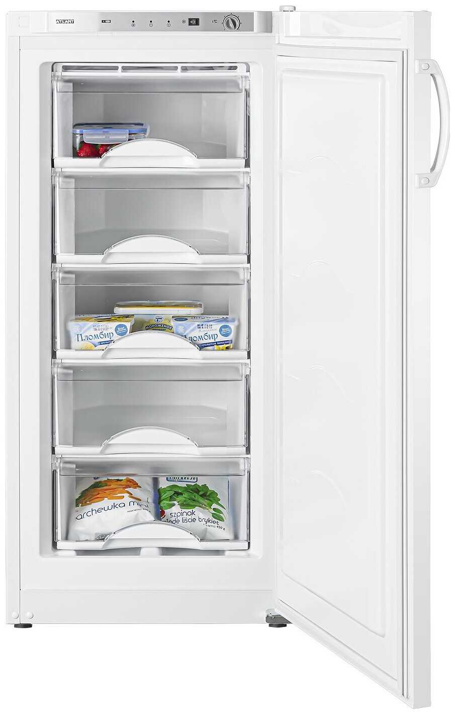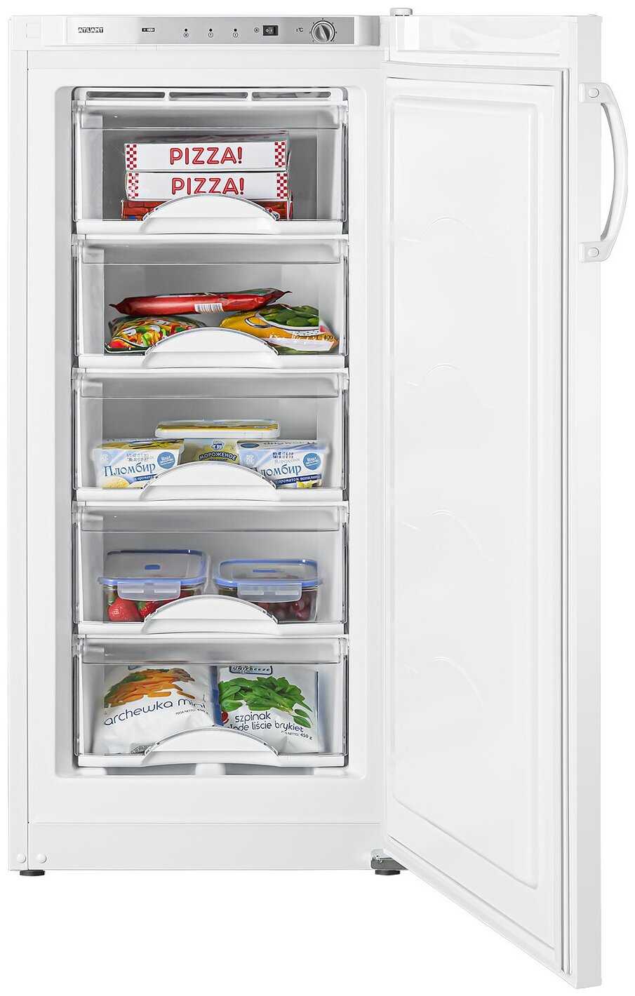 Модель позиционируется как компактная, но внешние габариты обманчивы: толстые стенки (до 8 см) сокращают полезный объём. Пользователи, переезжавшие со старых морозильников, отмечают, что 5 ящиков вмещают стандартный набор продуктов (мясо, рыбу, ягоды), но для крупных запасов места не хватает. Глубокие контейнеры с ручками в нижней части предотвращают случайное выпадение, но тонкий пластик ящиков вызывает опасения — некоторые сообщают о трещинах после интенсивной эксплуатации. Нижний отсек частично занят компрессором, что ограничивает его использование. Для оптимизации пространства советуют загружать продукты в вакуумной упаковке. При этом морозильник справляется с быстрой заморозкой без образования «снежной шубы», сохраняя структуру и вкус продуктов. Отдельно отмечают отсутствие смешивания запахов при правильной группировке содержимого по ящикам.