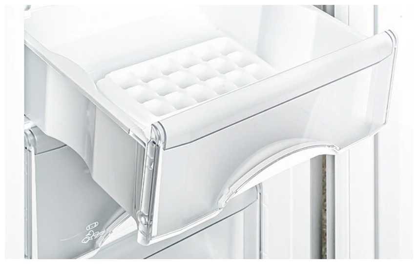 Система ручного размораживания (No Frost отсутствует). Первый ящик может покрываться наледью, что затрудняет доступ. Пользователи рекомендуют профилактическую разморозку раз в 6-12 месяцев, отмечая сложность организации процесса летом из-за необходимости перекладывать продукты. -