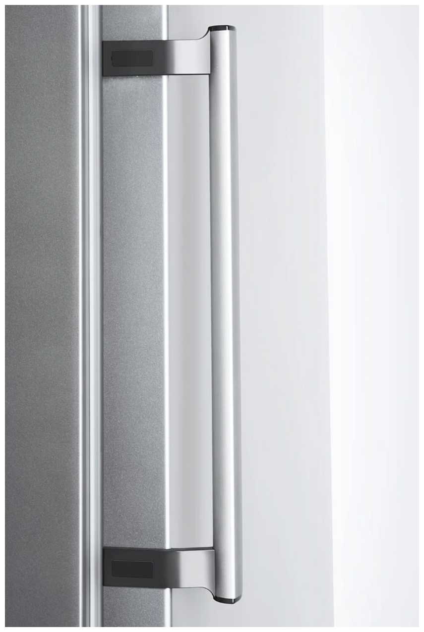 - Регулируемые полки и выемка на дверце для компактных продуктов повышают гибкость использования.