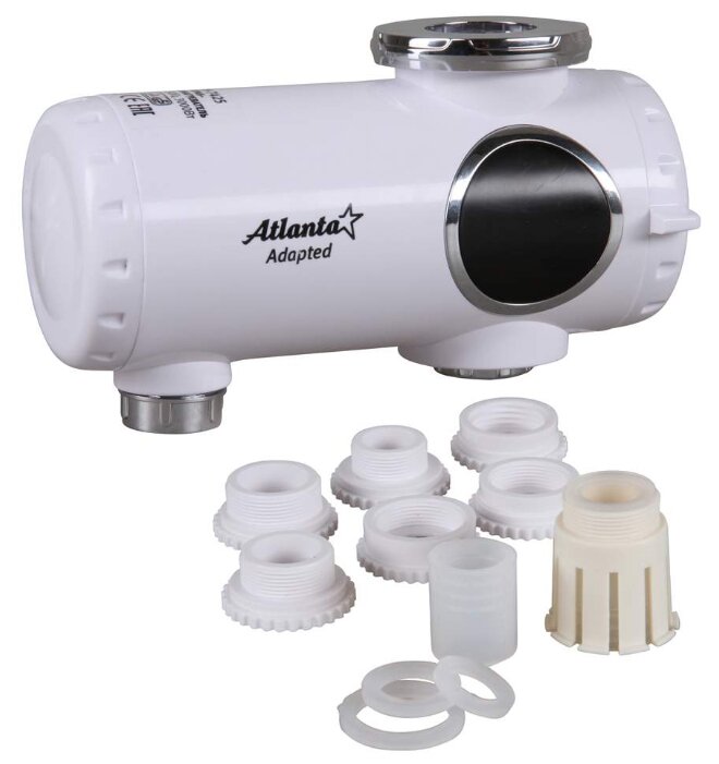 - В комплекте множество переходников для разных типов кранов, что позволяет установить устройство за 1-5 минут без инструментов или специалиста.