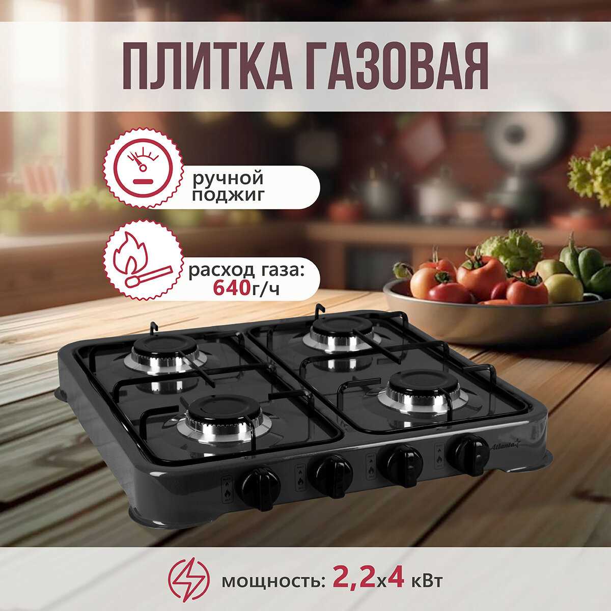 10 отзывов пользователей o Atlanta Плита газовая настольная четырехконфорочная (ATH-1806)