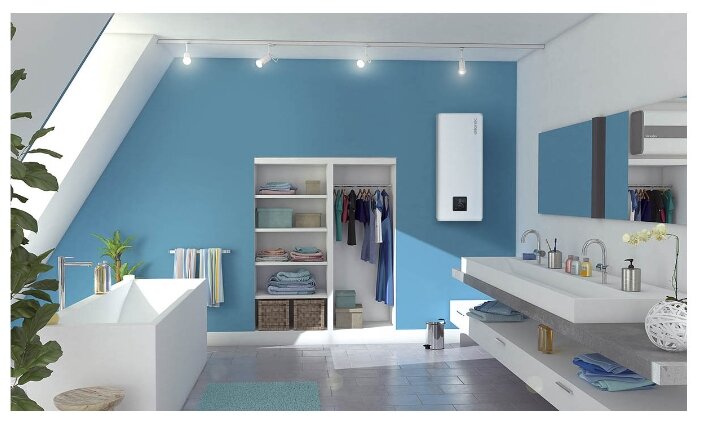 Хороший водонагреватель, объема достаточно, чтобы принять душ и не переживать о том, что горяченькая вот-вот закончится. Защита от коррозии и накипи предусмотрена. Выглядит красиво и занимает мало места при большой вместительности.
