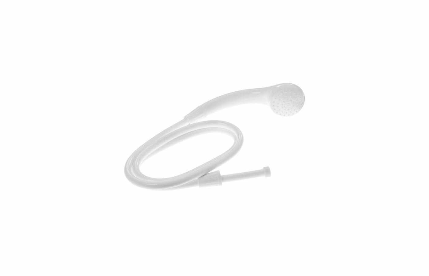 - Тонкие прорези в комплектной лейке создают равномерную струю при объеме 140-150 л/ч, компенсируя низкую мощность и обеспечивая комфортное мытье без разбрызгивания.