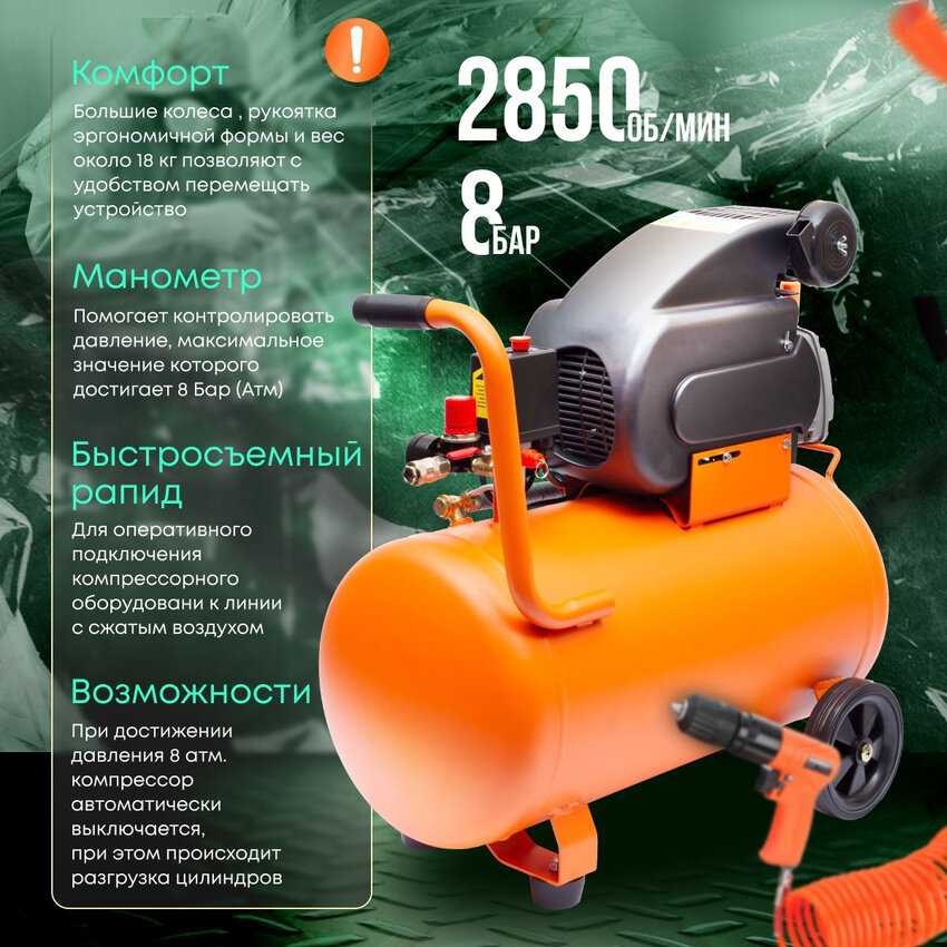 - Эффективная работа с инструментами: справляется с пескоструйным аппаратом и гайковёртом без потери давления.
