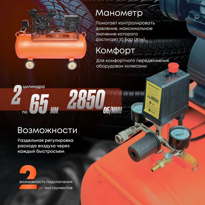 Отзывы противоречивы: часть пользователей эксплуатирует компрессор годами без поломок при своевременном ТО, другие столкнулись с выходом из строя редуктора через неделю или возгоранием двигателя за месяц. Слабыми местами признаны алюминиевые (не чугунные!) головки цилиндров, ненадёжные ремни привода с заводскими надрезами и тонкая ручка для транспортировки. Герметичность соединений проблемная – часты течи масла из-под головок даже у новых экземпляров.