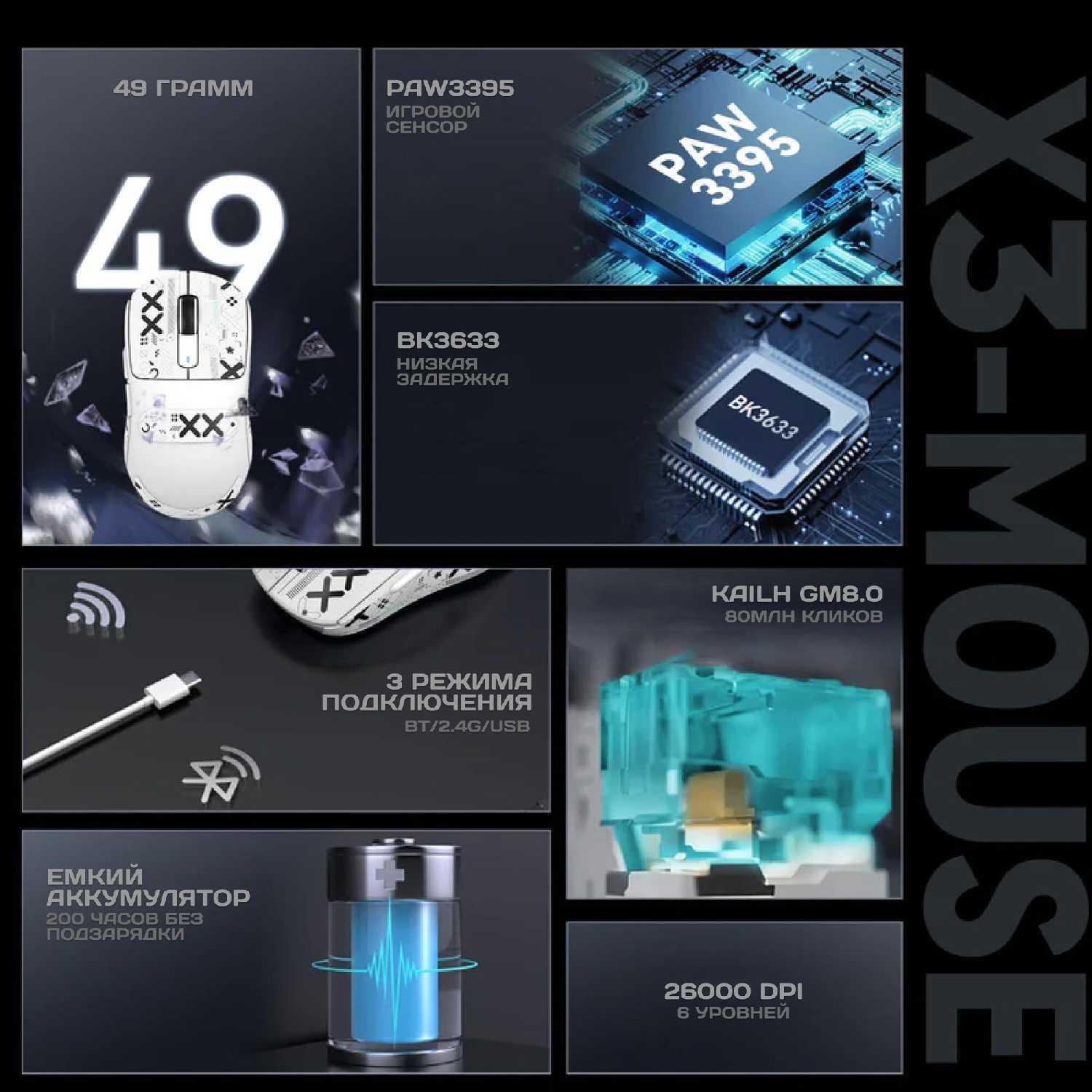 Брал по обзору с другого интернет ресурса. Прям модель та же X3 Pro, но в их версии из обзора есть донгл USB Type-A посередине мышки под крышкой.