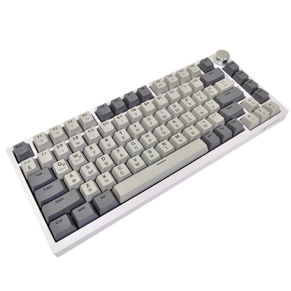 Русская раскладка на клавишах присутствует, но её исполнение вызывает больше всего нареканий. В версиях Gradient Black и Pink кириллические символы нанесены методом гравировки или краски поверх основного ключкапа, они не прозрачны и практически не видны в темноте даже с подсветкой, сливаясь с градиентным цветом клавиш. Многие пользователи отмечают, что символы чувствуются пальцами и есть опасения, что со временем они могут стереться. Это распространенная практика для бюджетных и не только клавиатур, но для комфортного использования в темное время суток рекомендуется пользоваться слепым методом печати или докупать сторонние ключкапы с качественной кириллицей. -