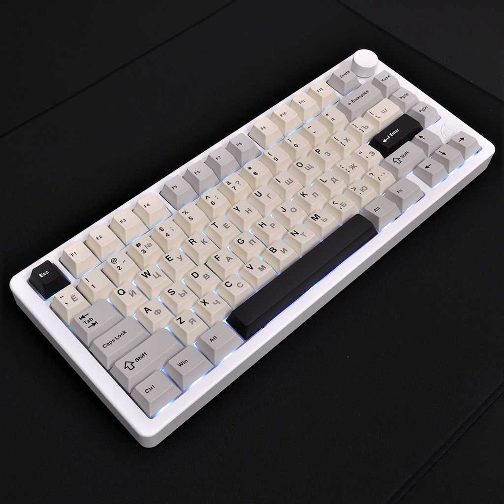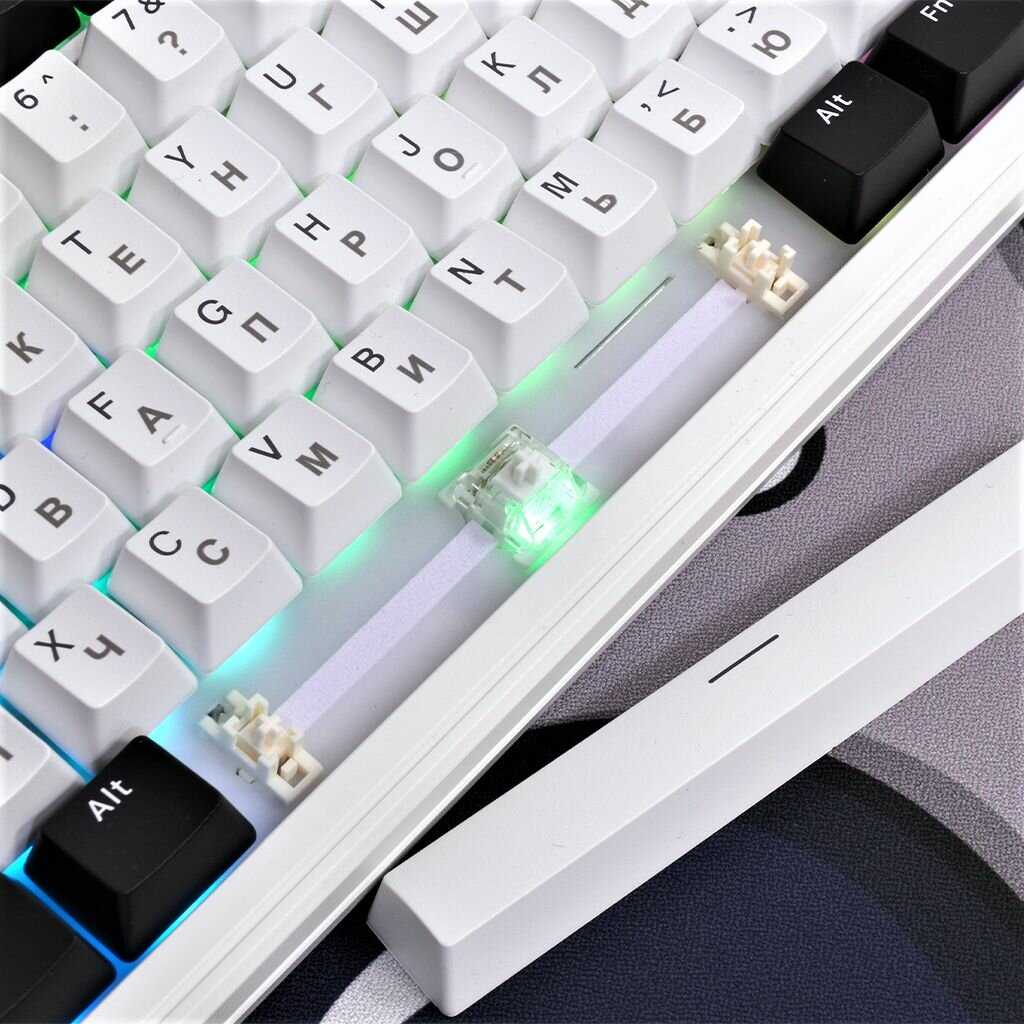 - - Короткая — это же и минус: всего 66 клавиш, нет отдельного цифрового блока и некоторых выделенных функциональных клавиш, что подойдёт не всем. Стоковые кейкапы не прозрачные, подсветка через них почти не видна, поэтому я заменил их на белые Ardor. Некоторые функции работают только через второй слой (Fn+Shift), и для тех, кто часто пользуется F1–F12 или требует прямого доступа, это неудобно. Также есть ряд функциональных клавиш, которые нельзя перебиндить — учтите это.
