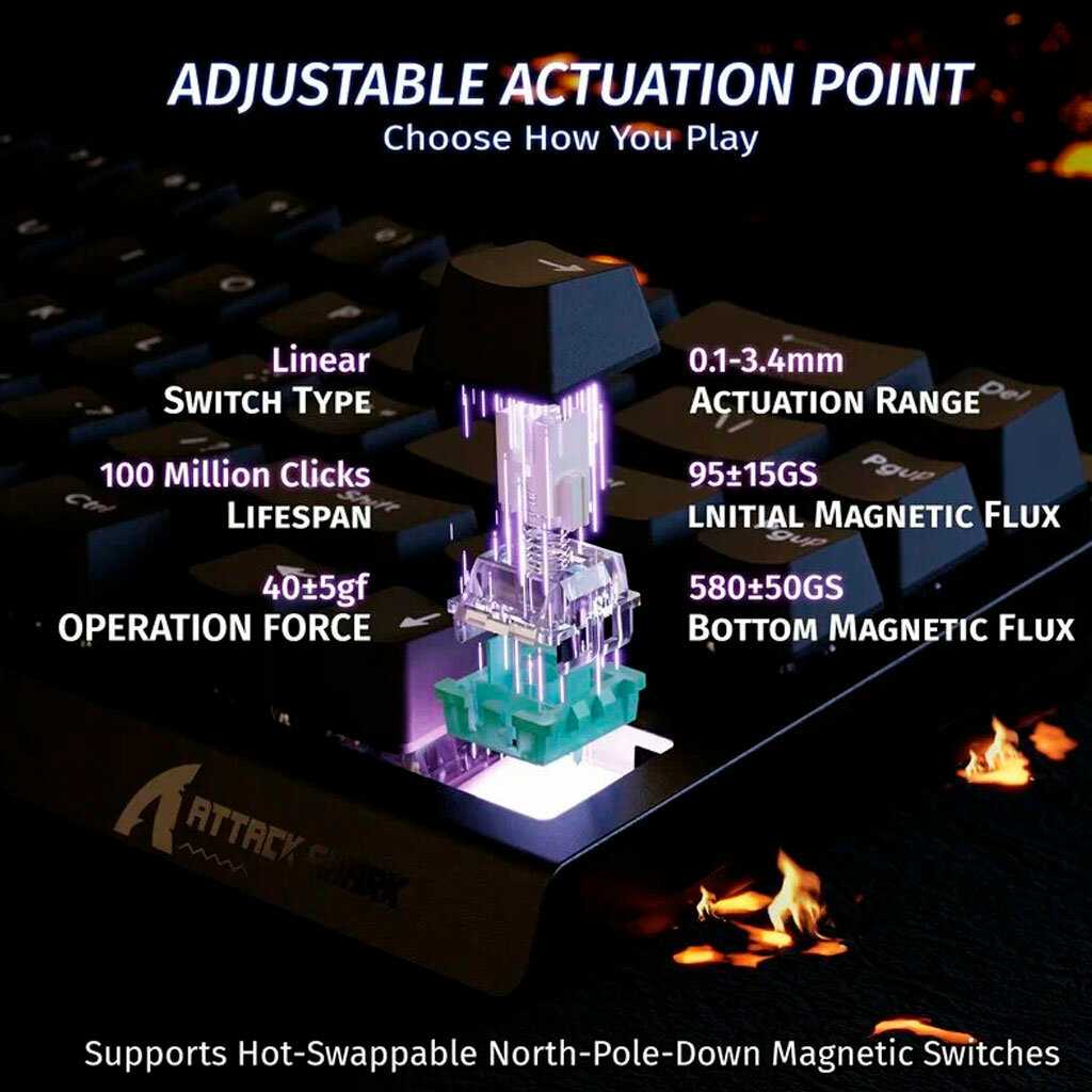 - Программное обеспечение позволяет точно настраивать точку активации (от 1.0 мм) и точку деактивации (до минимального значения), адаптируя клавиатуру под индивидуальный стиль игры и печати.