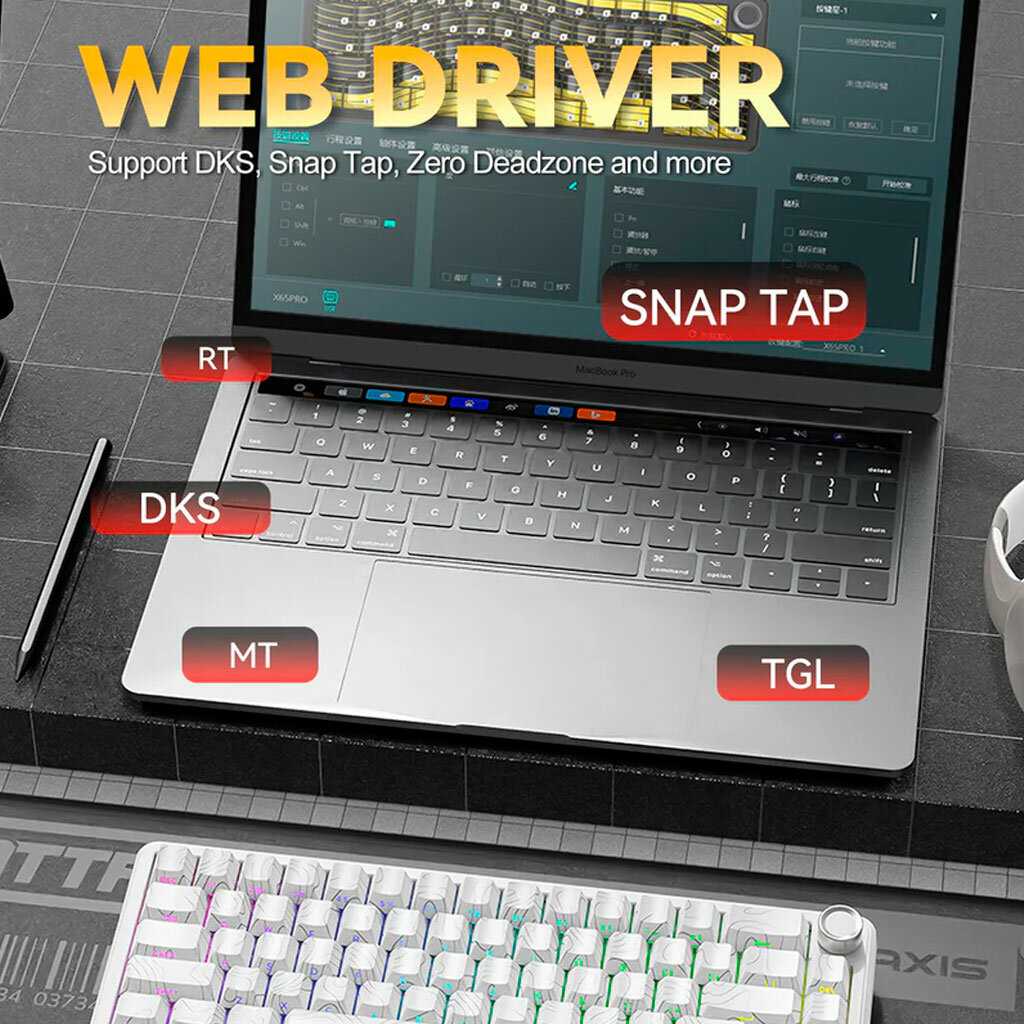 - Функция Snap Key (Snap Tap) минимизирует расстояние обратного хода для регистрации повторного нажатия, что повышает скорость и отзывчивость ввода.
