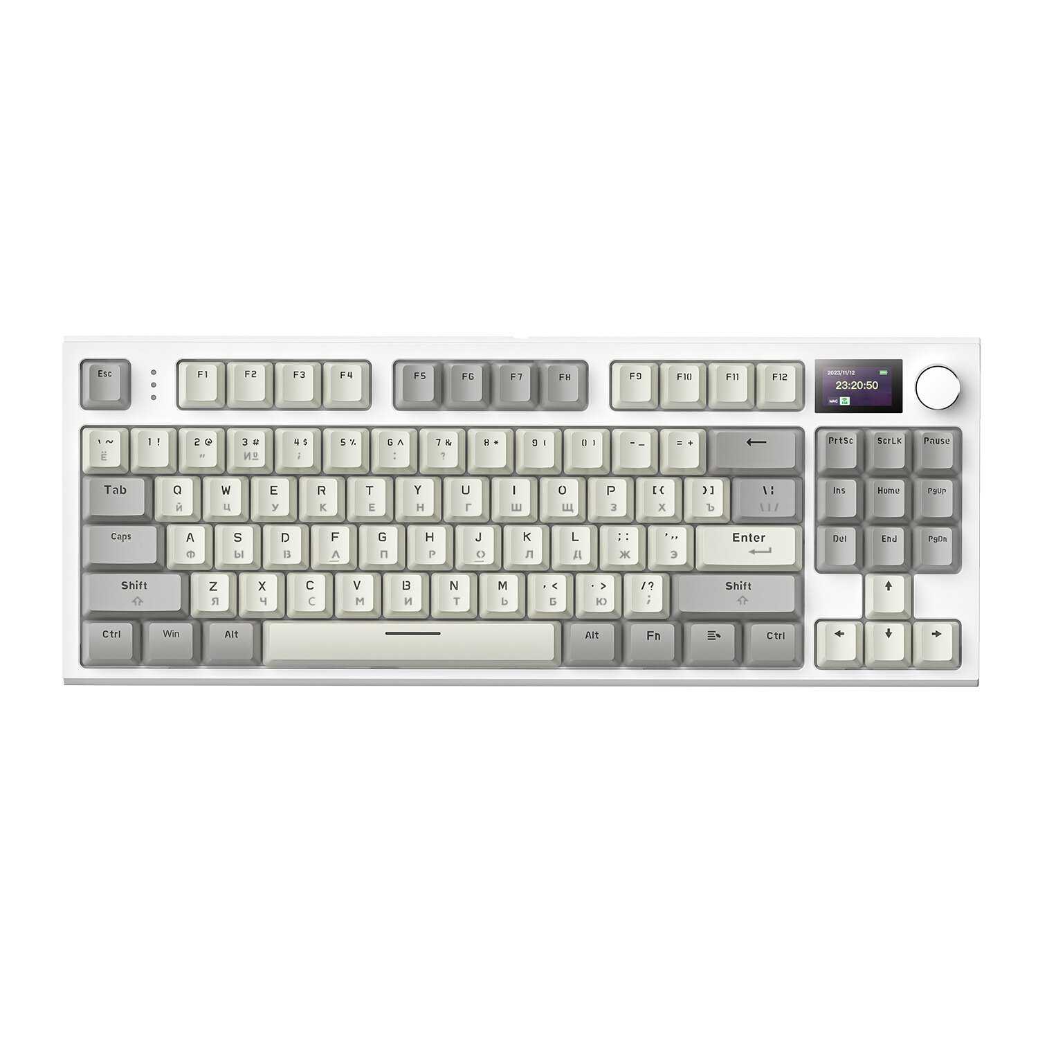 Без приложения на ПК экран клавиатуры не подхватывает местное время. Изменение изображения или анимации применяются невероятно долго. Да и сам экран расположен так, что просто закрывается клавишами рядом с ним, из-за чего его толком не видно при работе. Боковая подсветка настраивается не так гибко и не имеет возможности сменить радужный блеватрон на монотонный цвет.