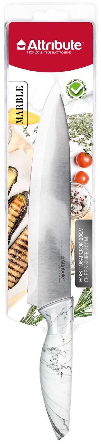 Комплектация : | Нож ATTRIBUTE Marble 20см поварской нерж.сталь, пластик |