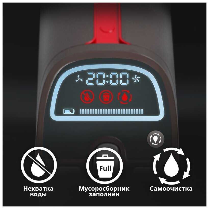 - + Функция влажной уборки, кнопка включения подачи воды для влажной уборки, лампа УФ дезинфекции, имеется хепа фильтр (очищает выдаваемый из пылесоса воздух), очень хорошо отмывает высохшие пятна, можно пылесосить или пылесосить и мыть.