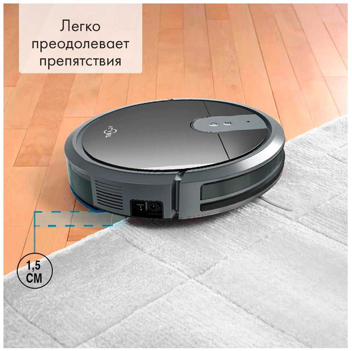 - Справляется с перепадами высоты до 1.5 см (порожки, переходы между комнатами).
