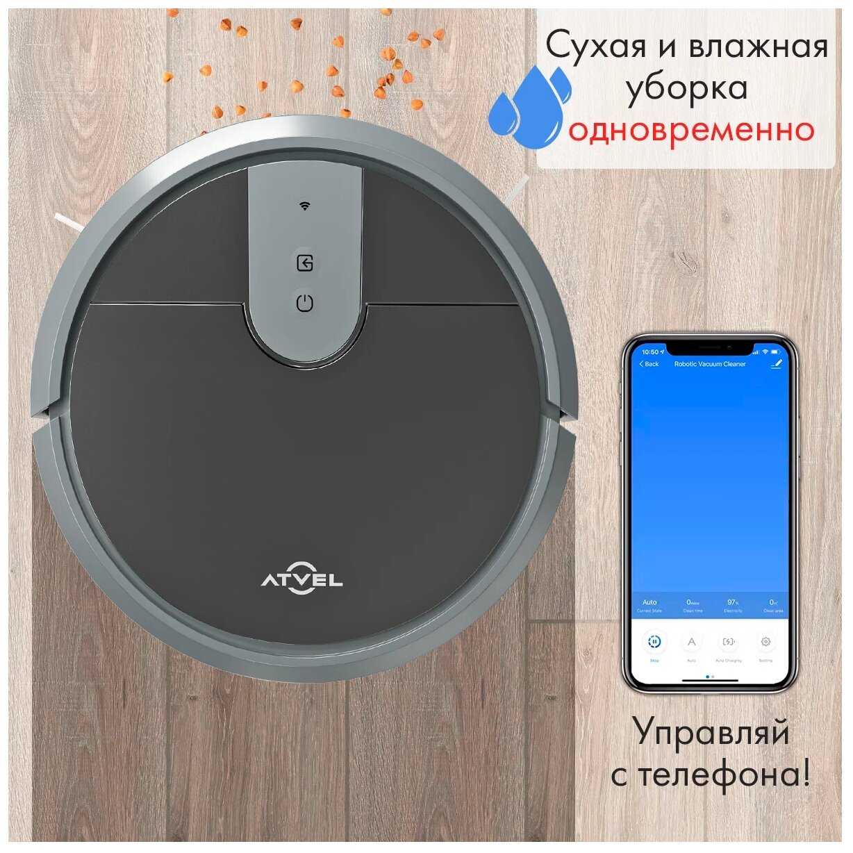 - Робот одновременно пылесосит и моет пол, хотя влажная уборка больше подходит для поддержания чистоты, чем для глубокого мытья.