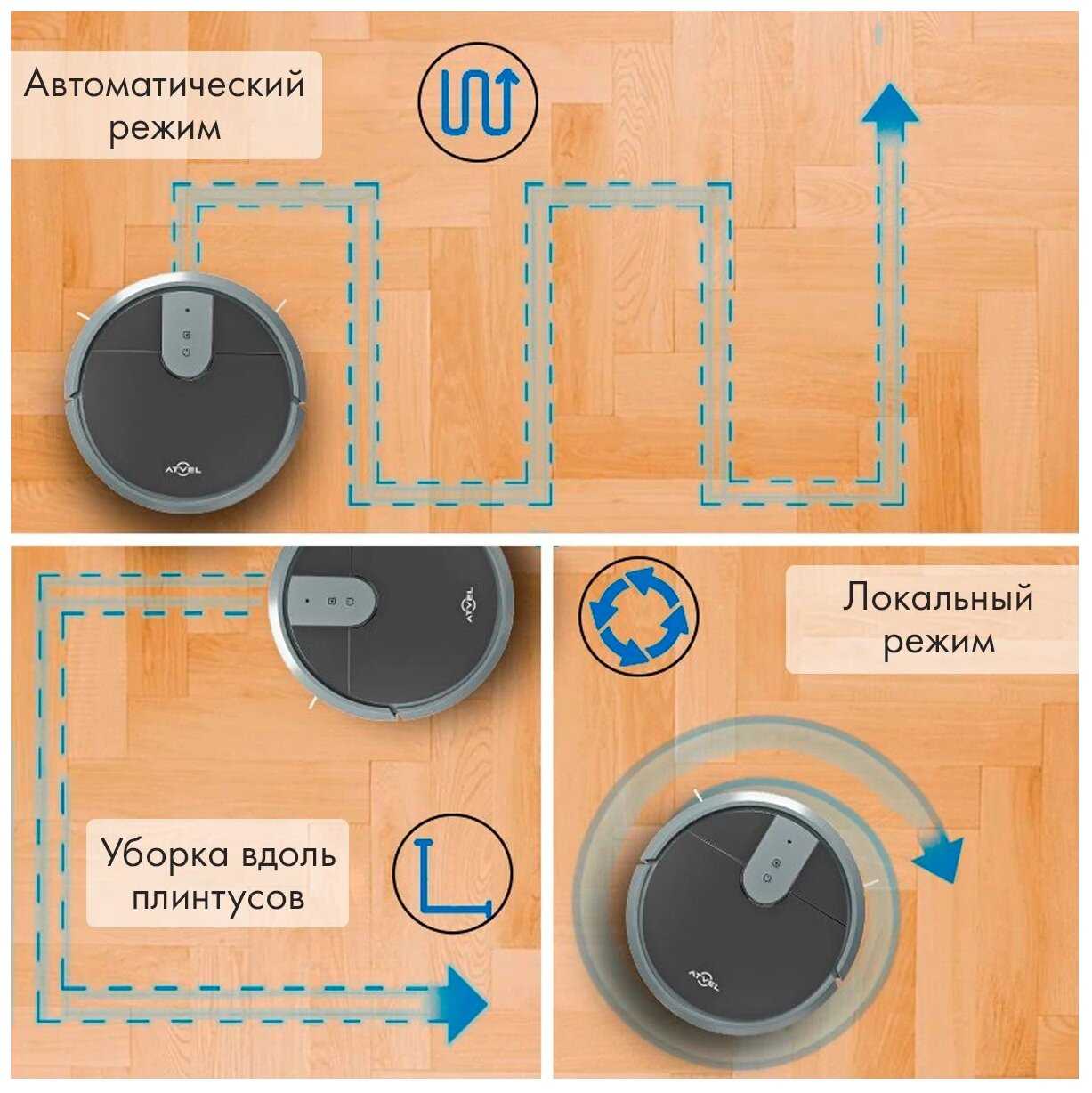 - режимы работы: движение вдоль стен