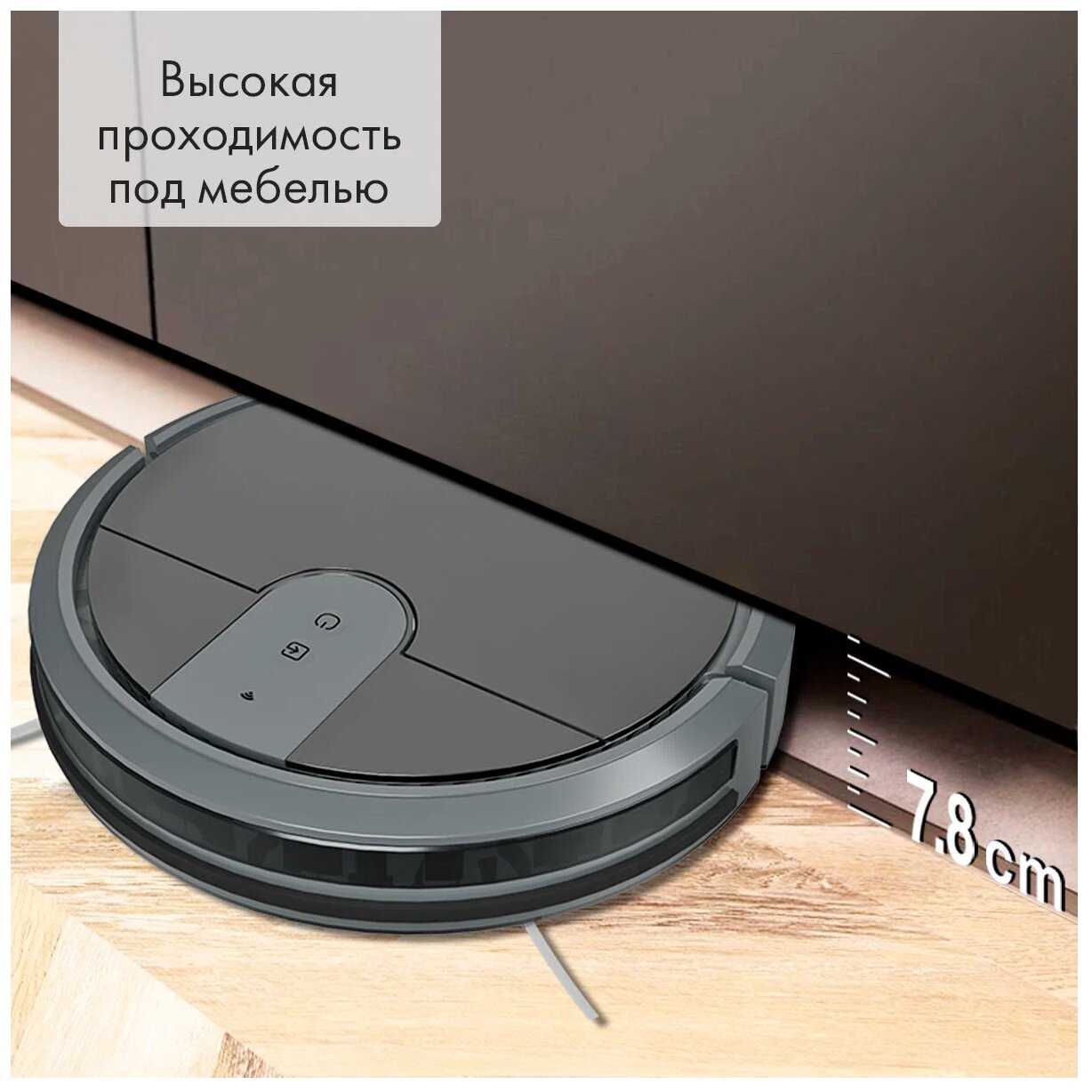 - Компактный корпус (высота 8 см) для уборки под мебелью: