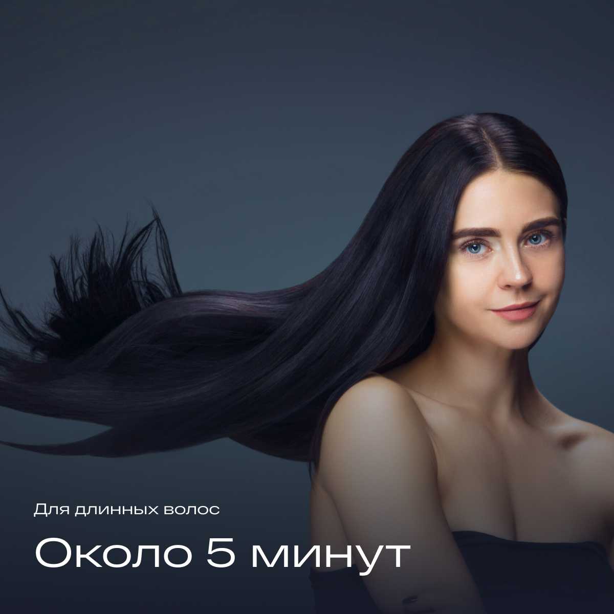 у меня длинные и очень густые вопросы, сушка с ним заняла 10 минут, плюс 5 минут на вытяжку брашем.