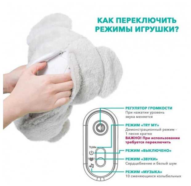 - + Детям нравится как игрушка. помогает уложить спать, спокойные успокаивоюшие мелодии и иметация дыхания. Нам всем понравилась.
