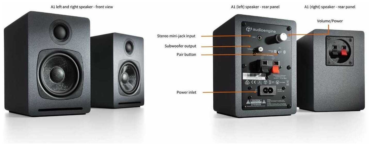 Характеристи Audioengine A1 активные настольные акустические системы с Bluetooth aptX, цвет черныйA1