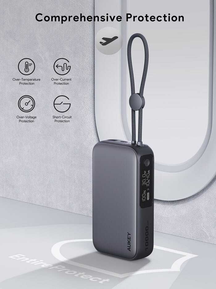 Отзывы о Внешний аккумулятор Aukey Spark Sling [PB-Y47, 10000 мАч, 30 Вт, с дисплеем, с встроенным кабелем Type-C]