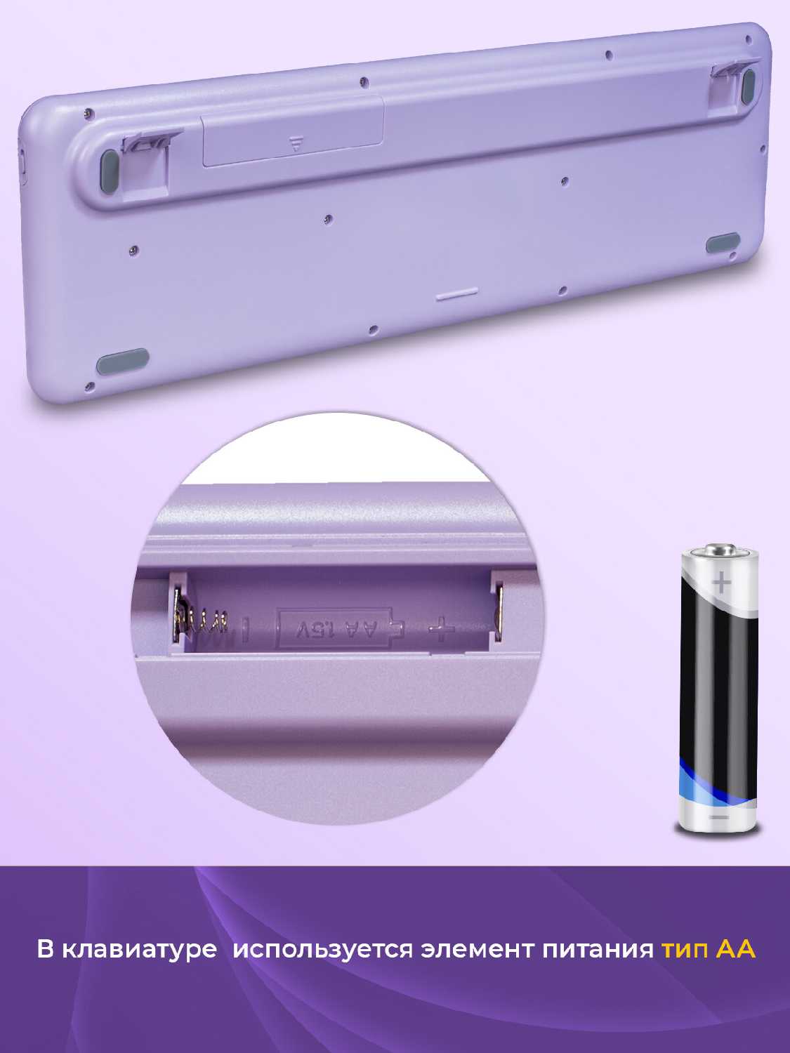 - Наличие выключателя на клавиатуре и мышке позволяет экономить заряд, что удобно для стационарного или нерегулярного использования.