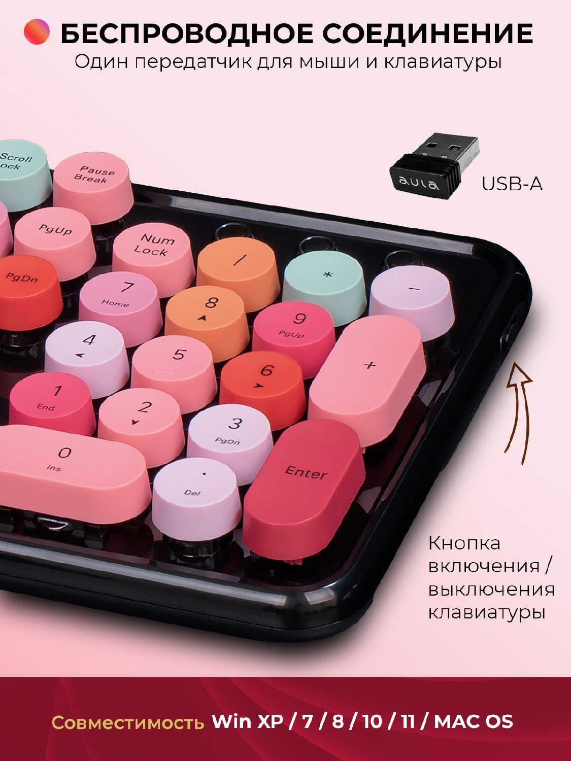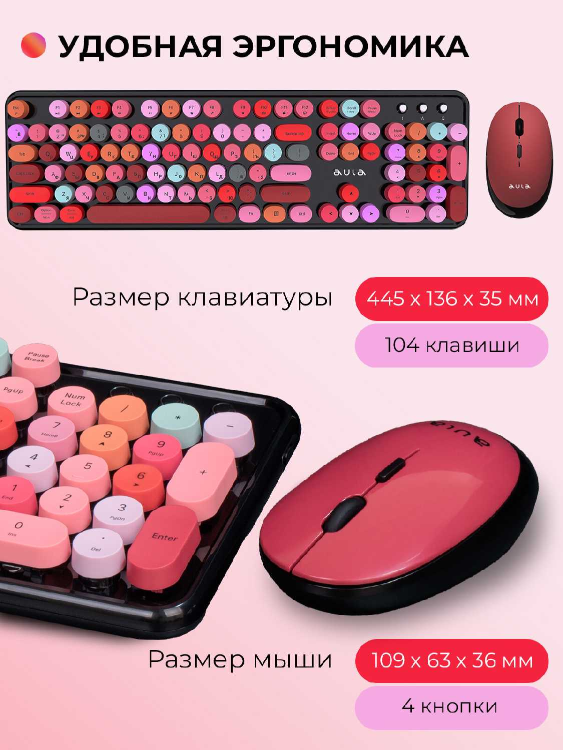 - Комплект с мышкой усиливает визуальную гармонию, делая набор подходящим для подарка детям или домашнего использования.