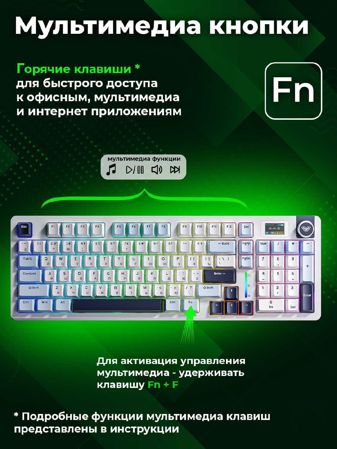 Есть управление музыкой через зажатие FN.