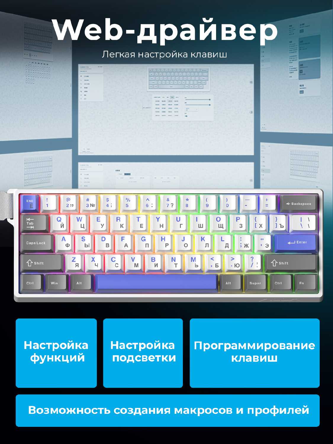 Отличная клава, взял на замену Zet Gaming (Ardor) immortality TKL. Приятная клава, тейпинг тихий. Кейкапы с кириллицей в комплекте. Настройка производится через браузер. Сомневался брать 60% клаву,но в реальности довольно удобно. За 2699 отличная клава, рекомендую!