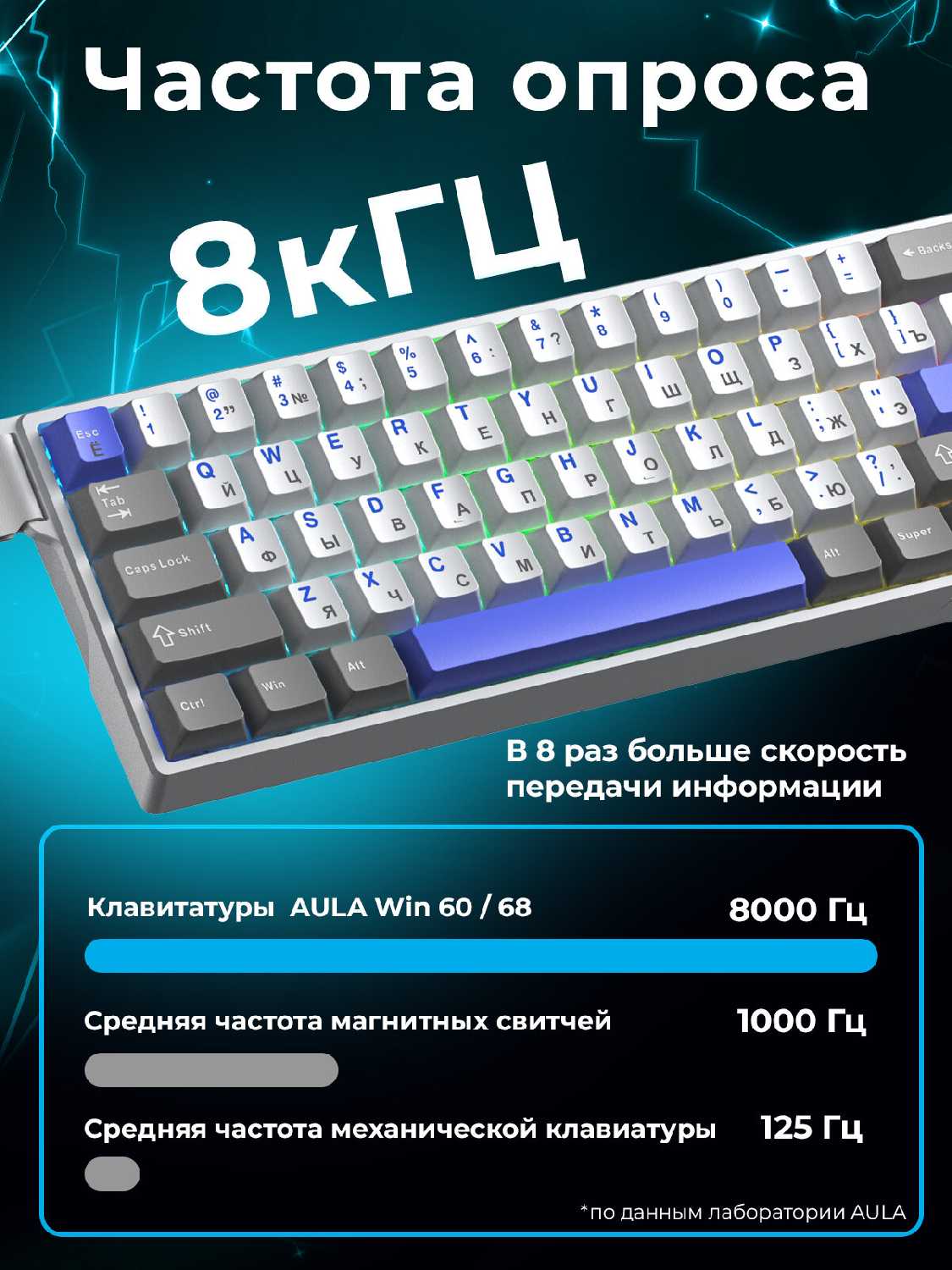 - + Эта клавиатура магнитная и недорогая, но при этом набор текста на ней получается комфортным и приятным. Клавиши нажимаются без усилий, свитчи сделаны на хорошем уровне, особенно нравится, что белый подсветка переходит в синий оттенок, а не в зеленоватый, как иногда бывает. Софт тоже удобный и качественный, без лишних наворотов.