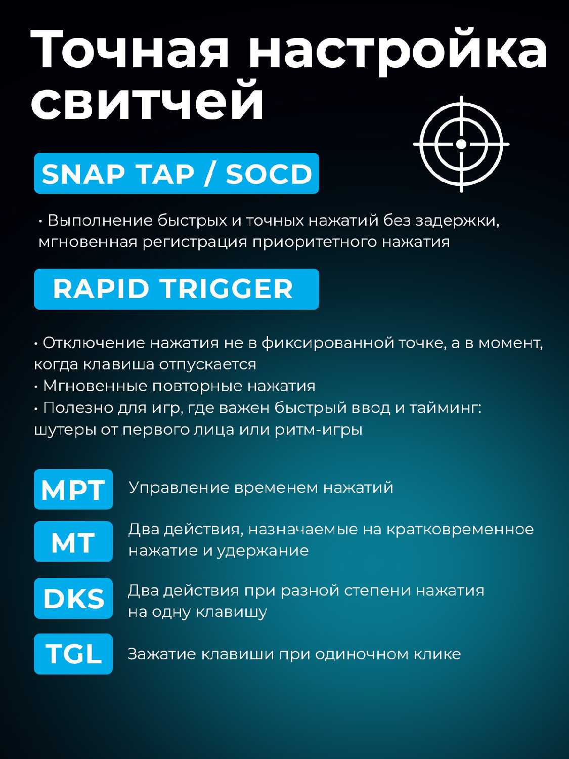 хоть и софт кривой и лучше 100 раз подумать хотите ли вы с ним мучаться, но сами магнитные свичи и правда быстрее чем на обычной и ощущается быстрота срабатывания