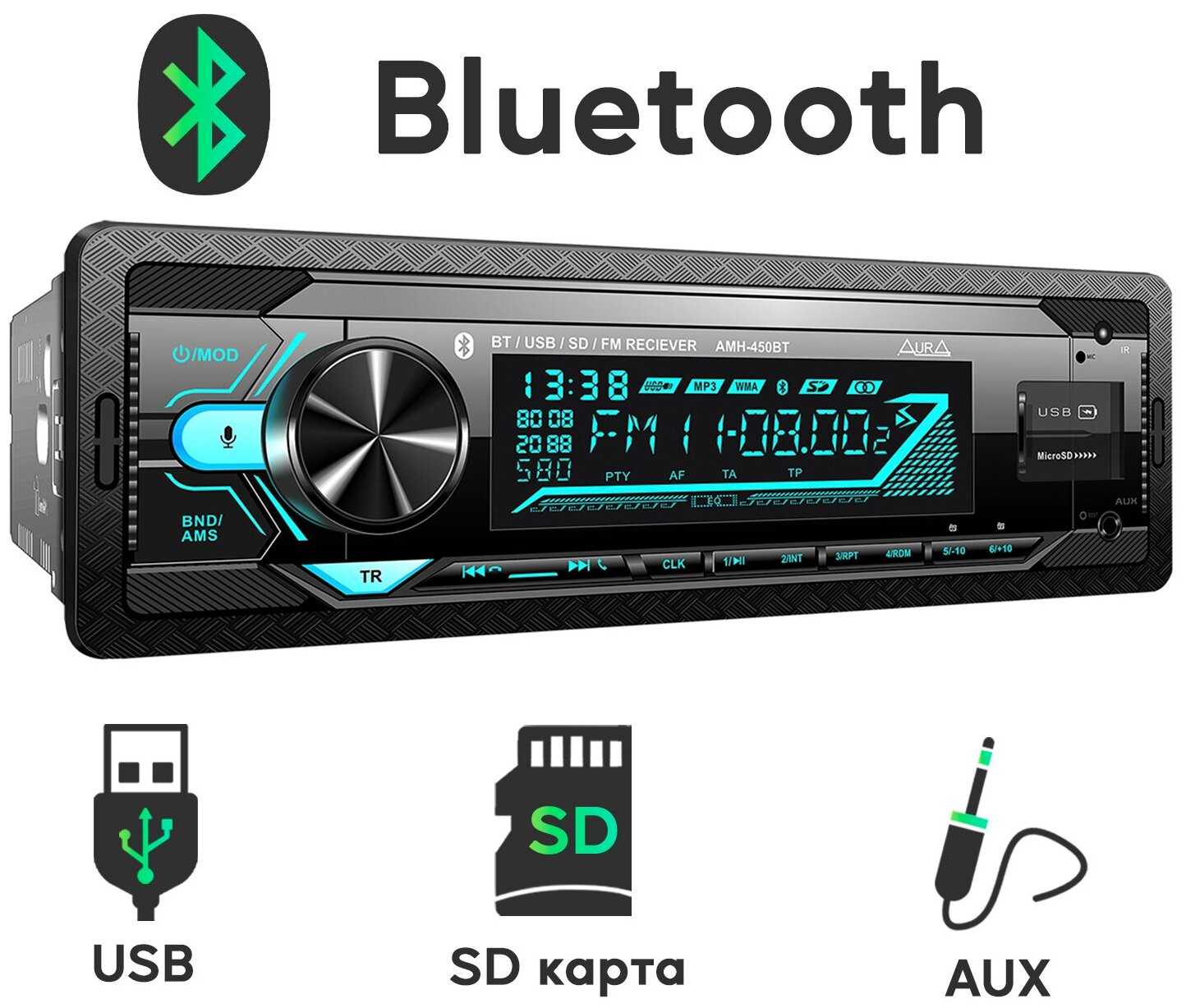 Отзывы о Автомагнитола изменяемая подсветка с поддержкой SD, AUX, USB, Bluetooth - Aura AMH-450BT 1din
