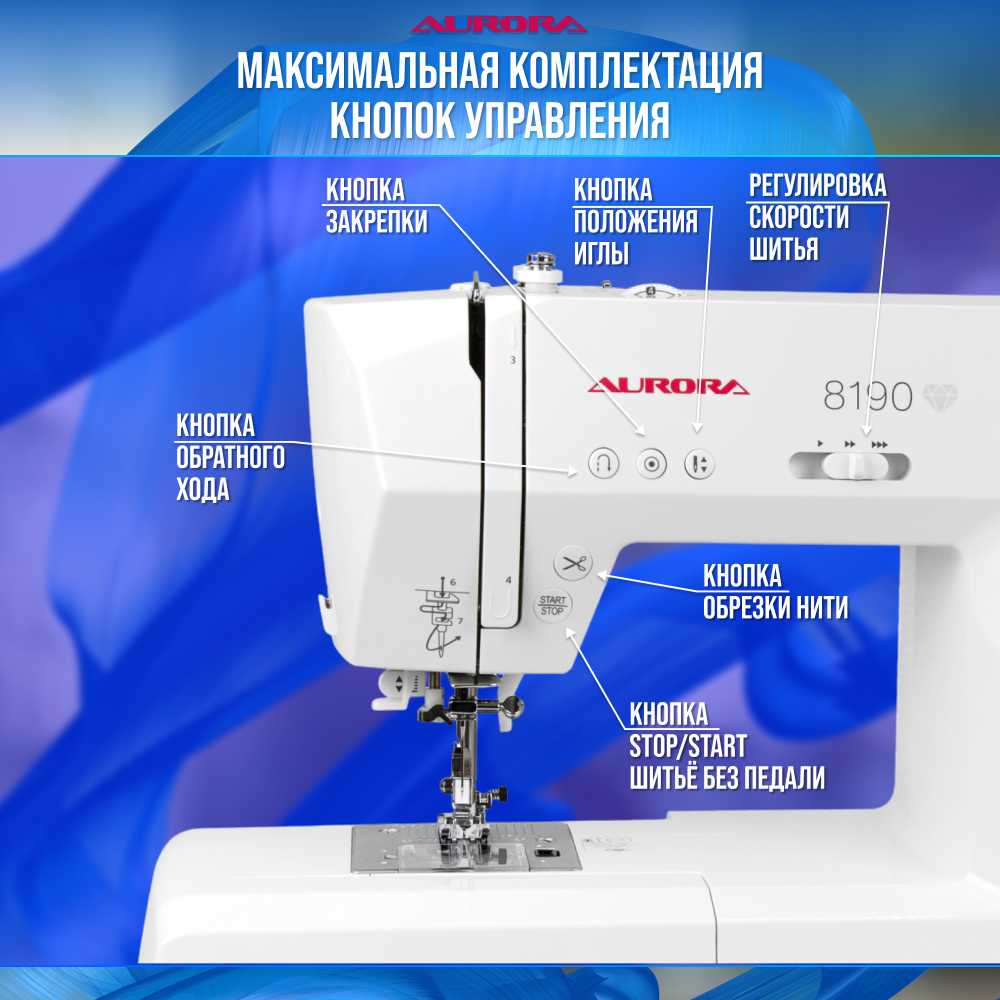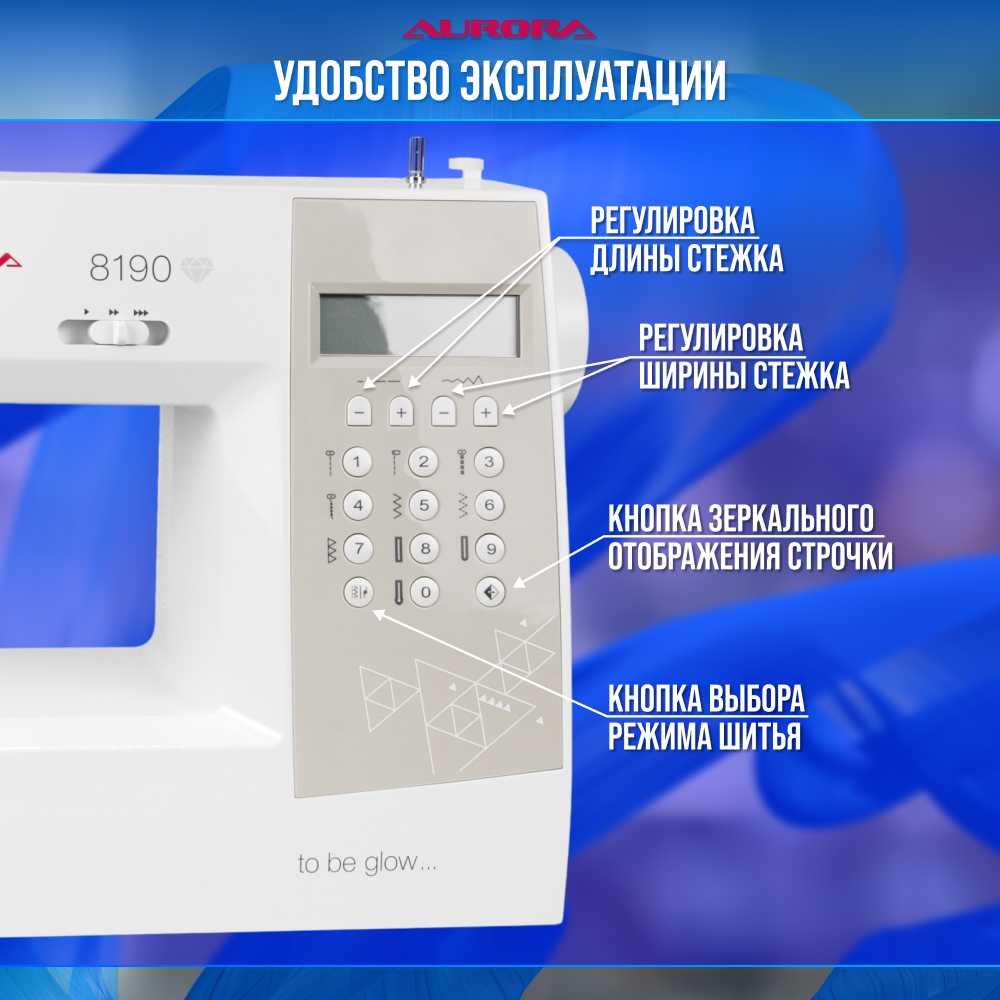 Долго выбирали машину на замену нашей старенькой Necchi (её сказали не ремонтируют) и консультант в магазине сказал "берите Аврору, они качественные и для них всегда есть запчасти. И вот определись с моделью 8190. Могу сказать машина отличная, красивая, тяжёлая, всевозможные современные прибамбасы здесь в наличии, шьёт тихо и плавно, супруга в восторге. Надеемся, что прослужит долго.