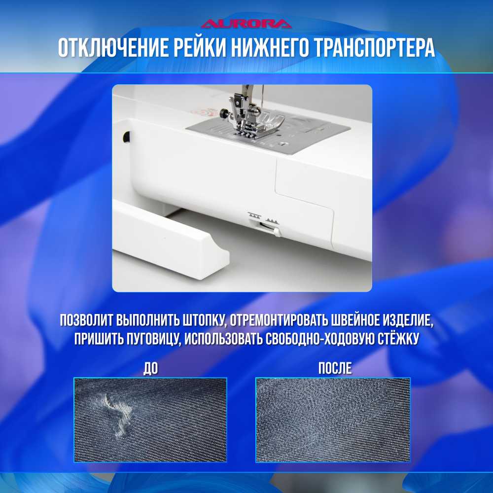 Брали в подарок маме, она швея с опытом. До этого более 10 лет пользовалась машинкой brother, аврору взяли из-за соотношения цена/функционал. Обрезка нити - восторг, невероятно удобно и экономит время, куча различных швов и лапки в комплекте. За вечер сшили свитшот и две футболки, поэкспериментировали с декоративными швами. Сначало казалось, что куча швов и зеркальное отображение то больше прикол, но на деле оказалось очень полезно и удобно. Относительно легкая, но при этом не скачет. В комплекте есть все необходимое, мелочь, а приятно. Опытным швеям интуитивно будет понятно как работать с машинкой.