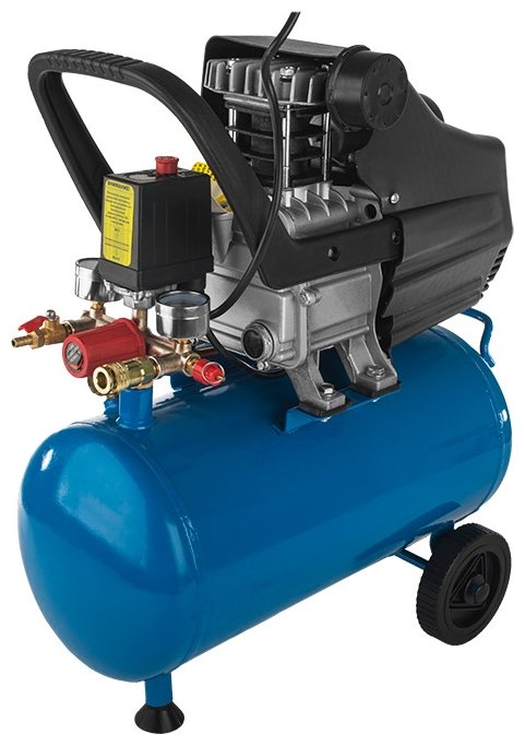 - + Негромкий. Быстро наполняет ресивер. Воздух без масла. Есть вольтметры на двигателях. Есть возможность использовать только одну из двух головок