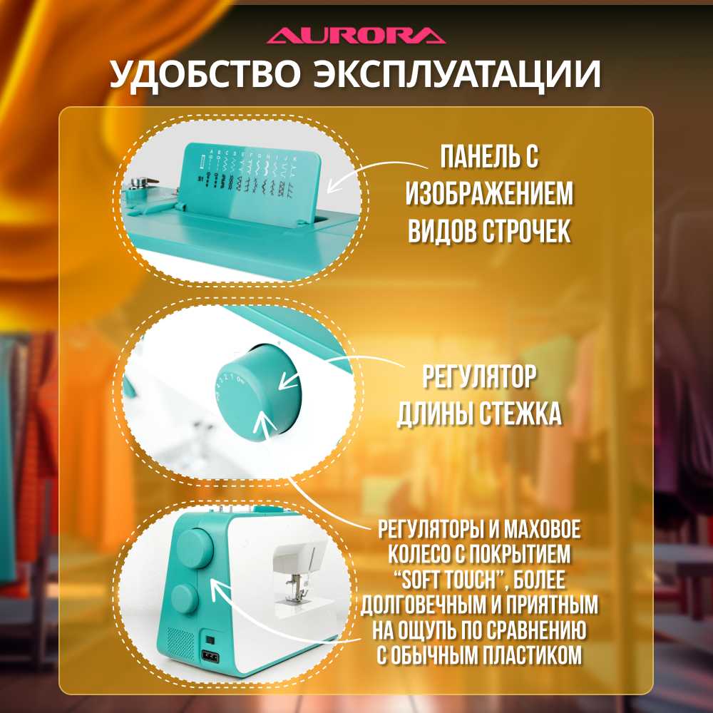 Производительность и универсальность обработки материалов Работа с разнотипными тканями: Aurora Style 70 демонстрирует высокую адаптивность к материалам различной плотности, подтвержденную многократными тестами пользователей. Тонкие ткани (хлопок, шелк для наволочек) обрабатываются без зажевывания и пропусков стежков, обеспечивая ровную строчку. Среднеплотные материалы (трикотаж, вельвет) прошиваются стабильно при правильном подборе игл, что отмечают опытные швеи. Плотные многослойные композиции (джинса, спецовочная ткань в 4-8 слоев) успешно проходятся при активации повышенного подъема лапки и усиленной прямой строчки, хотя экстремальные нагрузки (например, пледы с объемным утеплителем) могут приводить к поломкам механизма. Критично важным аспектом является необходимость точного соответствия иглы типу ткани — при нарушении этого правила наблюдаются сбои.