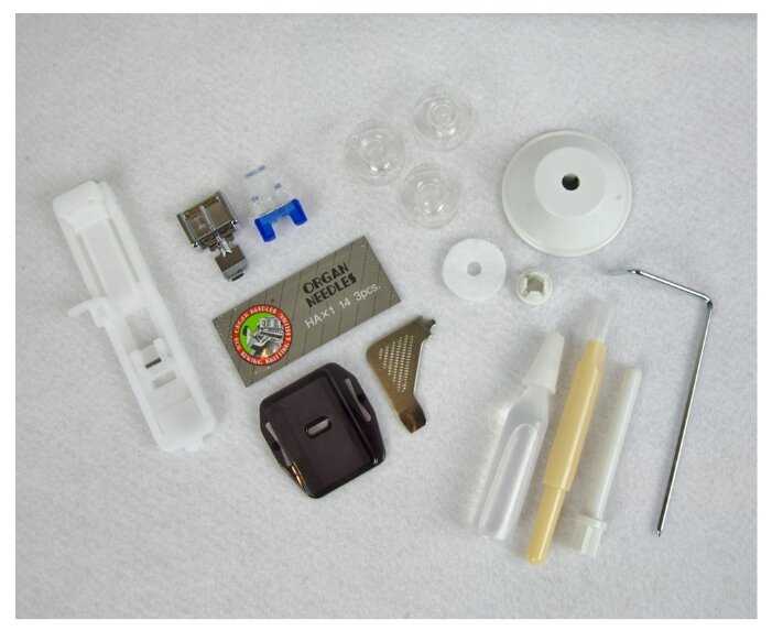 , в комплекте есть все необходимое для начала. Очень понятная инструкция. - - Штопательная пластина бесполезна без пяльцев, пыталась заштопать старые джинсы, но нитка снизу все время путалась и ткань зажевывало внутрь. По итогу проще всего оказалась прямая строчка и кнопка реверса.