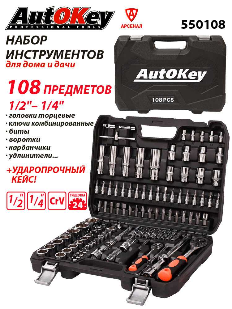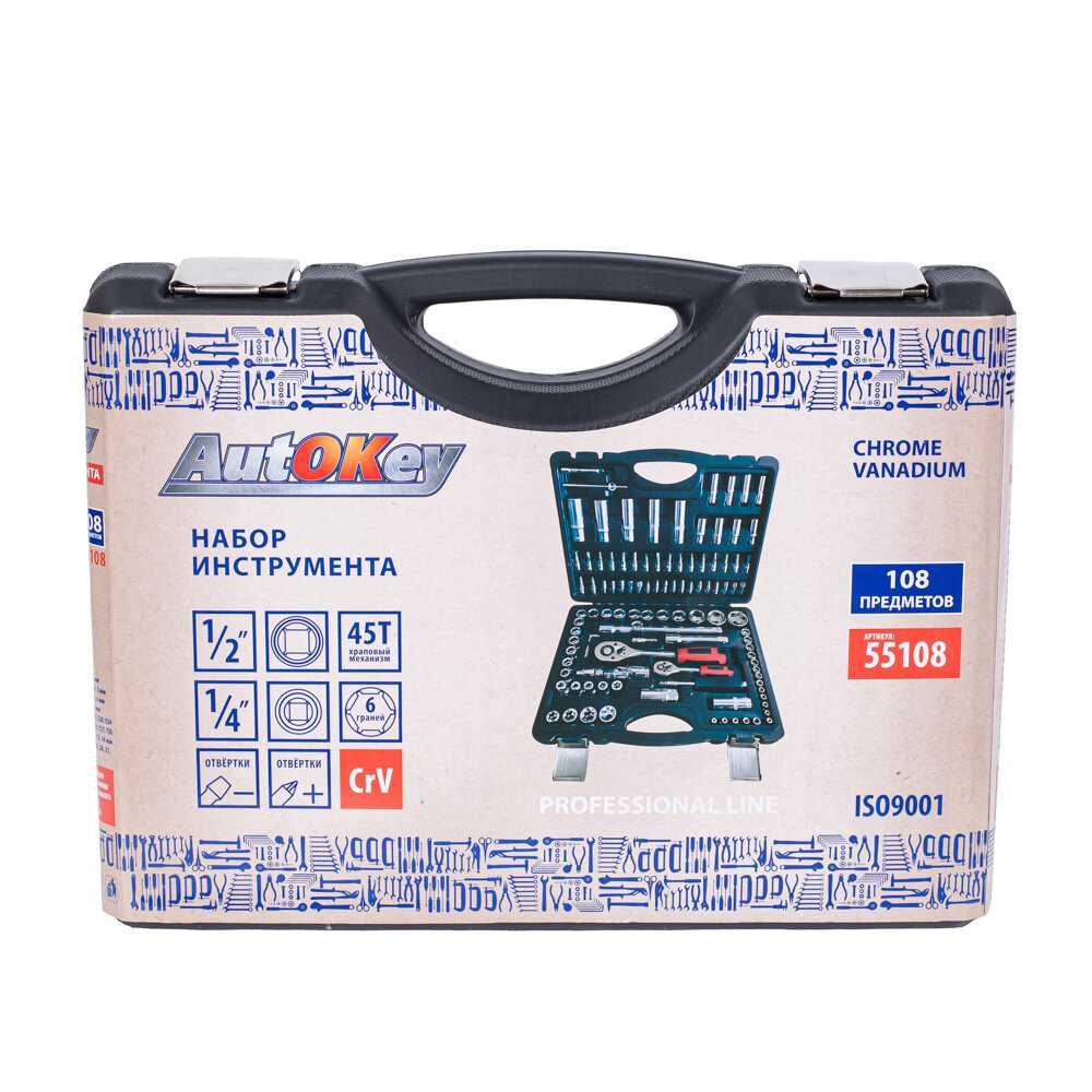 Характеристи AutOKey Набор инструментов 108 предметов (головки торцевые, биты, трещотки)