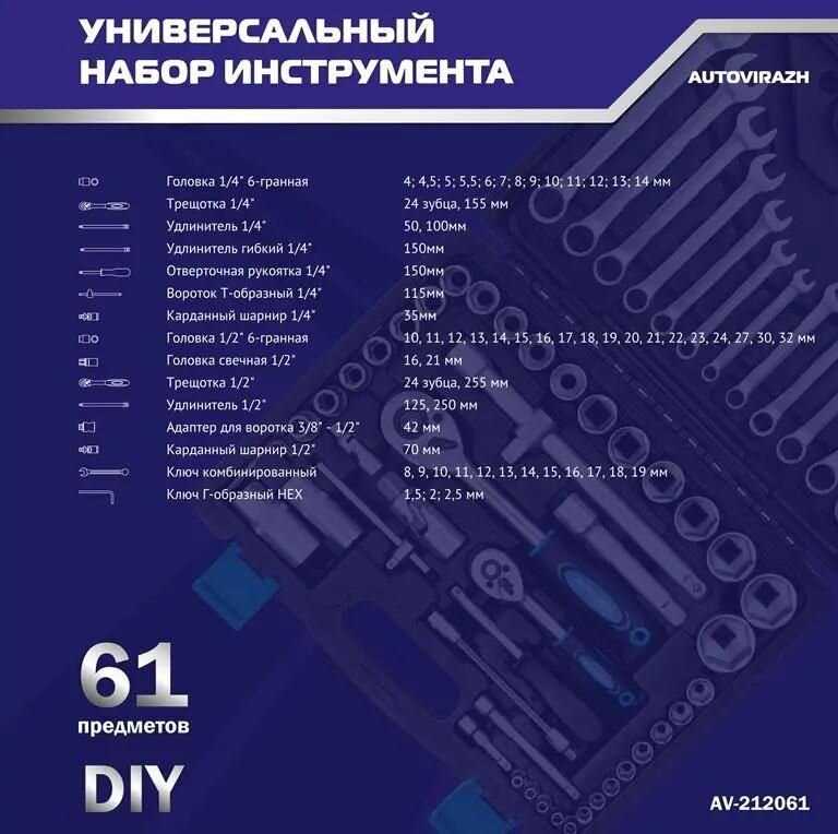 Отзывы о Набор строительных инструментов AUTOVIRAZH AV-212061 [61 предм.]
