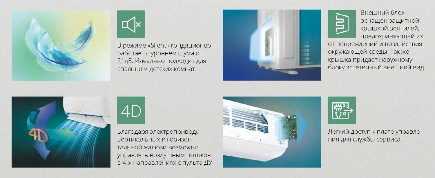 Дополнительные функции : | автоперезапуск, самодиагностика, самоочистка внутреннего блока |